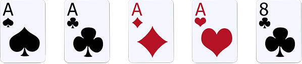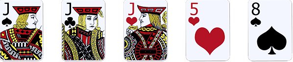 Pemain: 5, 5, 5, K, A (Three of a Kind 5)
