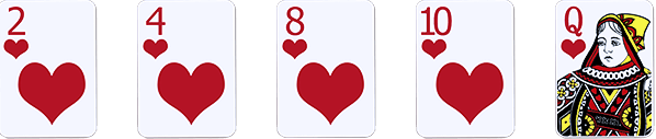 Pemain: 5, 6, 7, 8, 9 (simbol kartu 9 adalah Keriting)