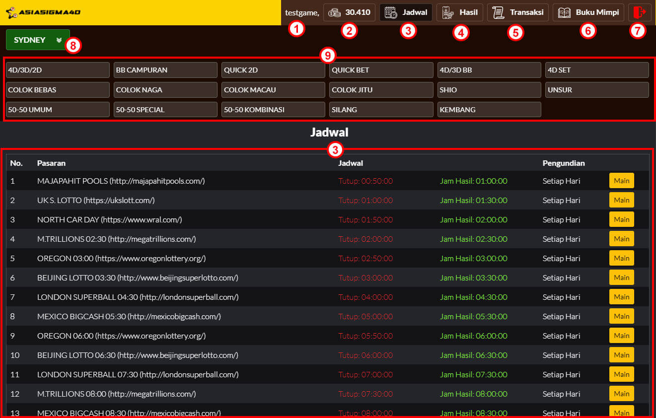 8. Pemilihan pasaran togel yang ingin dimainkan